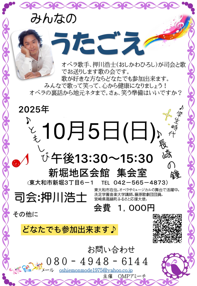 司会は押川浩士。オペラの裏話や日常での爆笑ネタをお送りしながら進行させていただきます♪